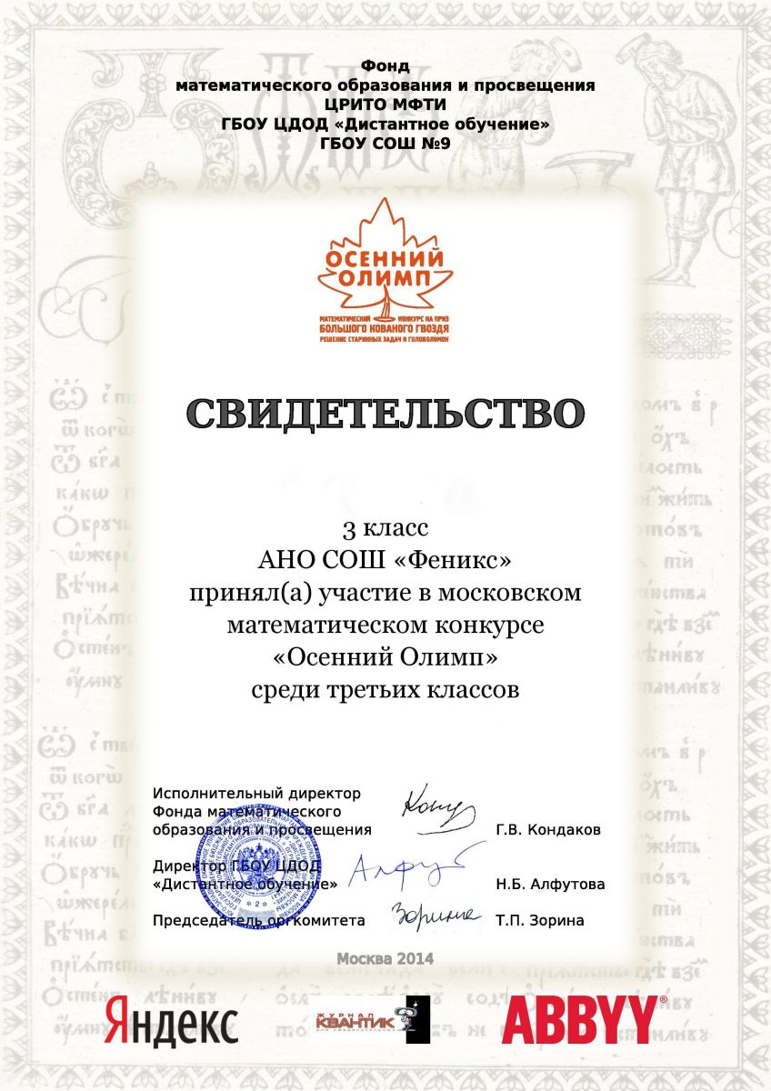 "Мы всем классом соревновались в беге на мероприятии "Осенний кросс". Вдоль берега Москвы-реки мы бежали один километр. Перед кроссом мы размялись, а после кросса восстановили дыхание и пили воду. Мне очень понравилось бежать и я прибежал вторым! Я был рад победе других!" Артём
