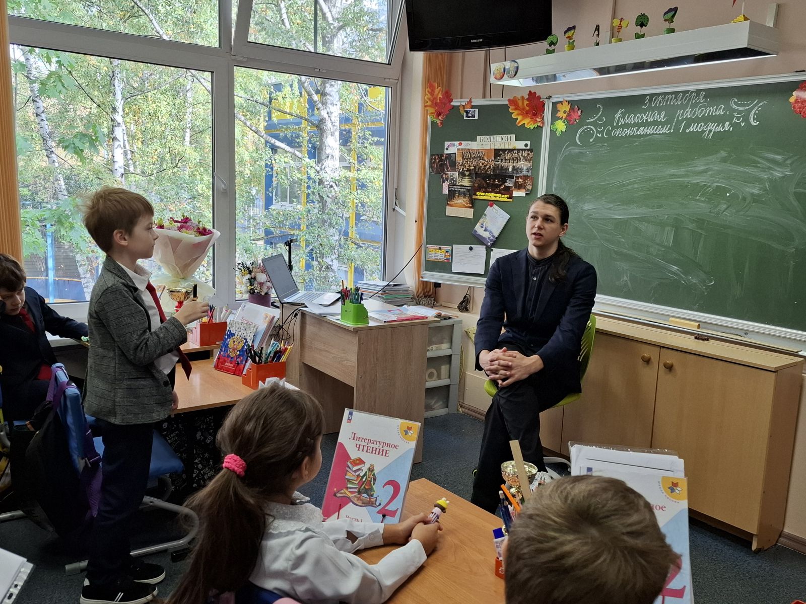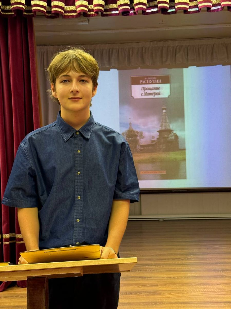 На читательской коференции по литературе наш класс представляли София с книгой Булгакова М.А. "Мастер и Маргарита" и Герман с романом Валентина Распутина "Прощание с Матёрой"