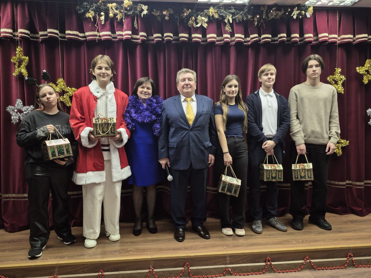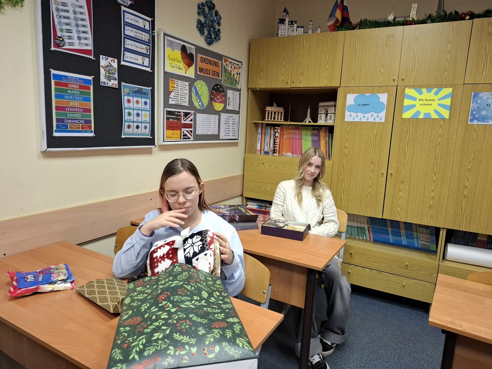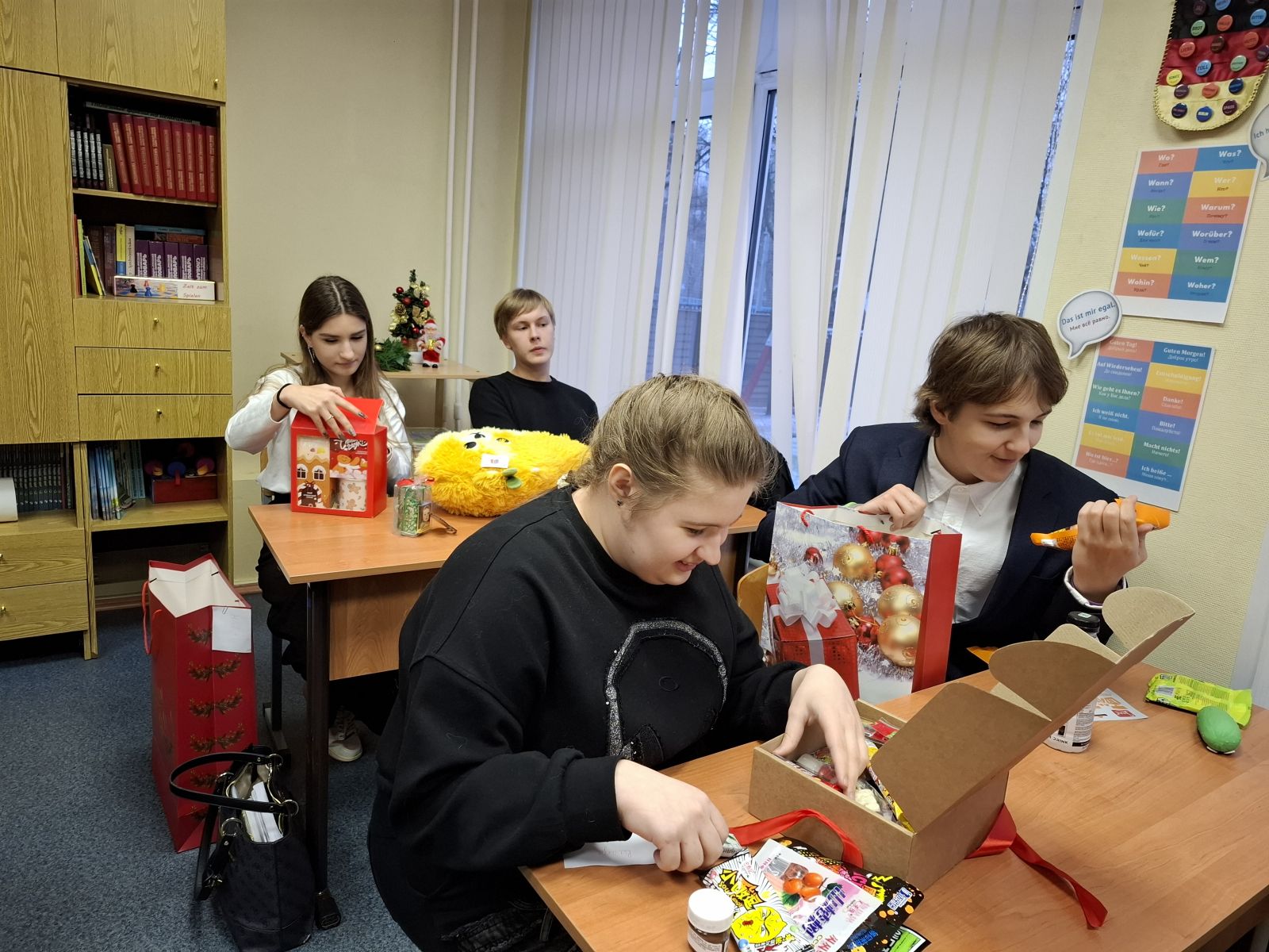 А это уже обмен подарками от Тайного Санты и классный новогодний огонёк.