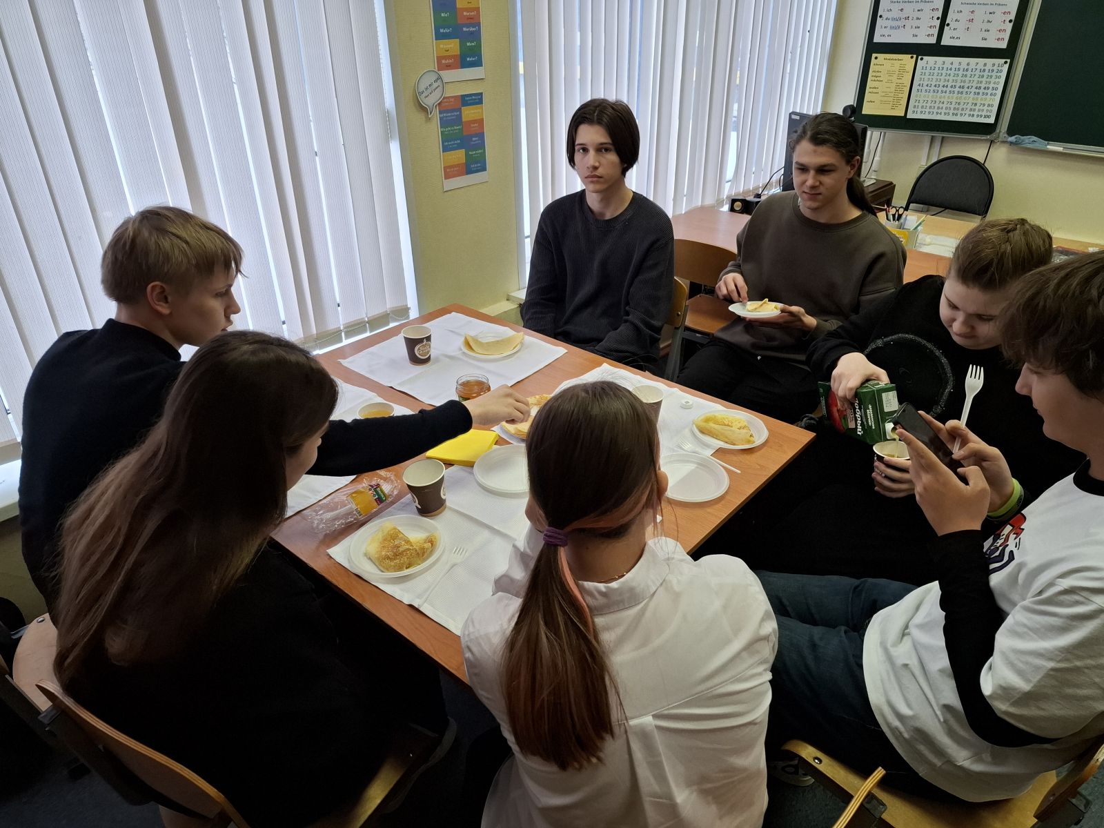 Классный огонёк, посвящённый Дню Защитника Отечества и угощение блинами в честь Масленицы.