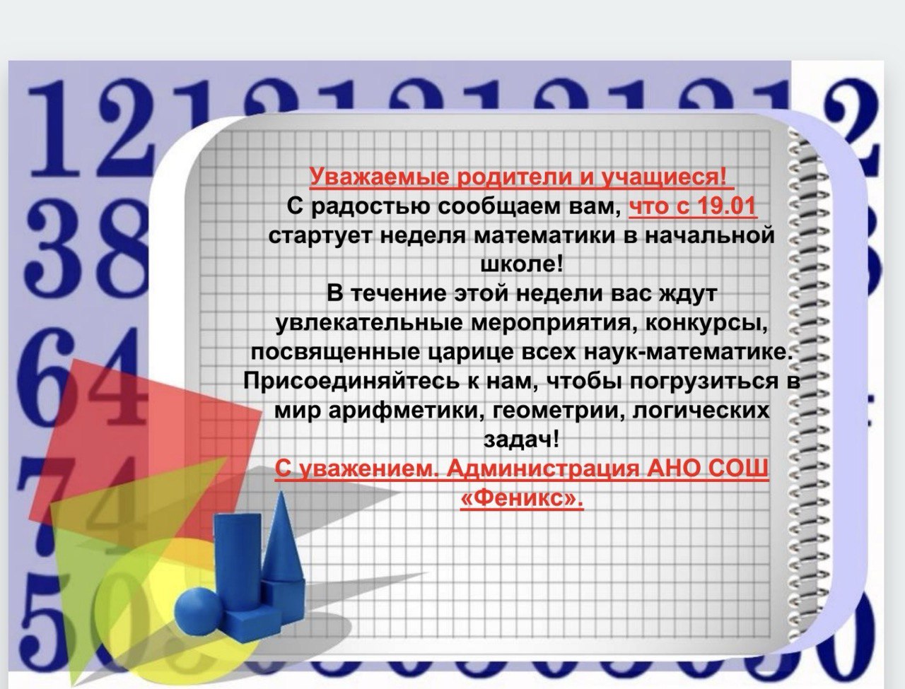 Неделя математики в школе "Феникс"