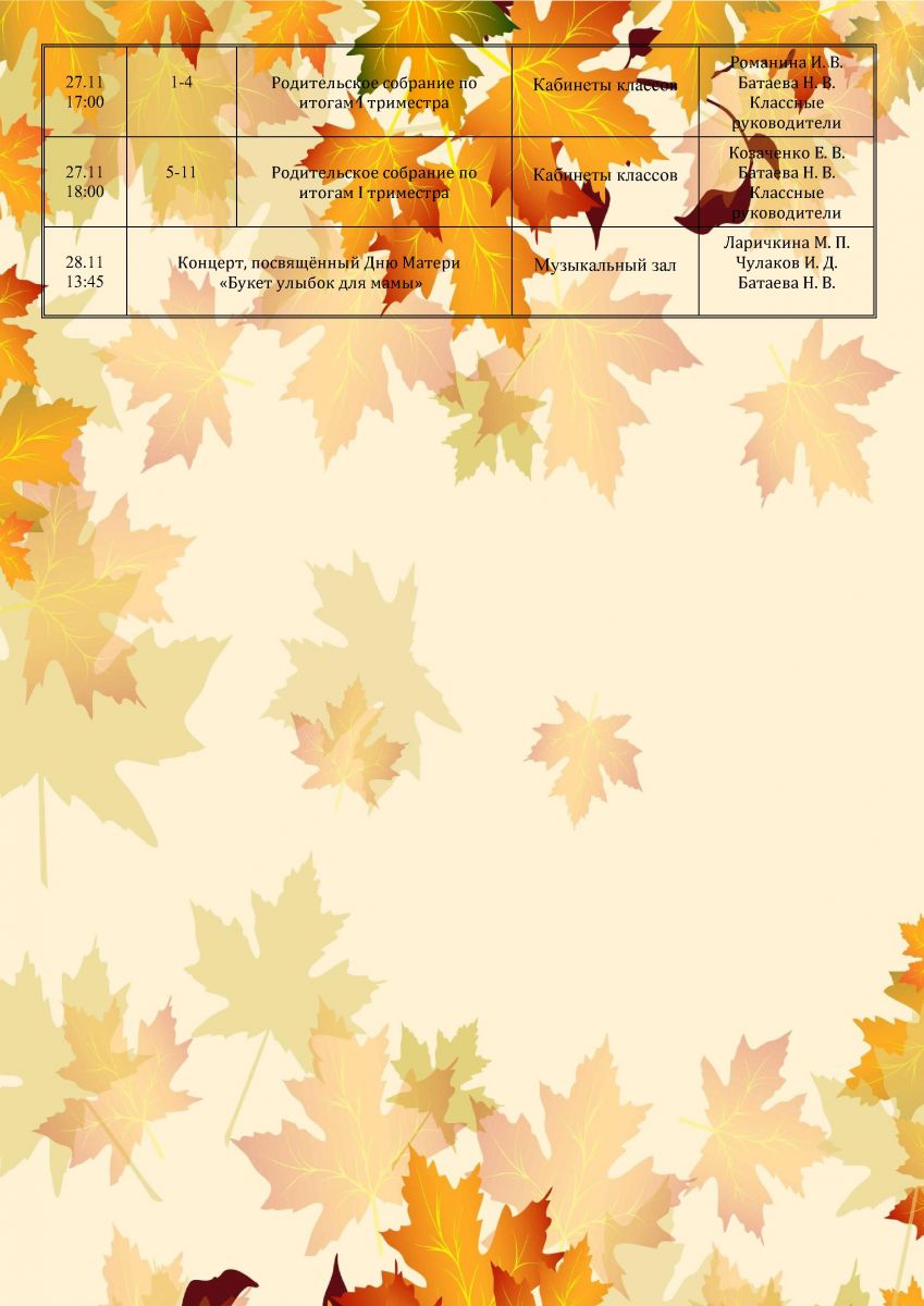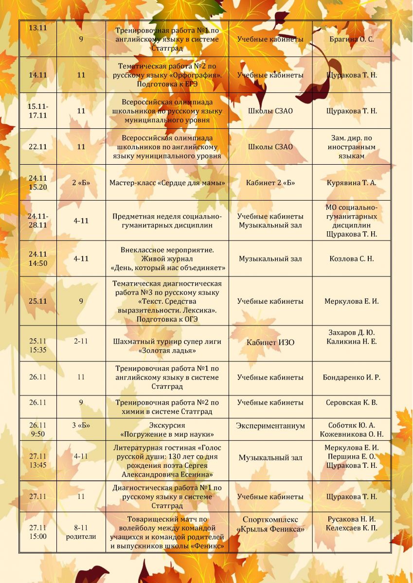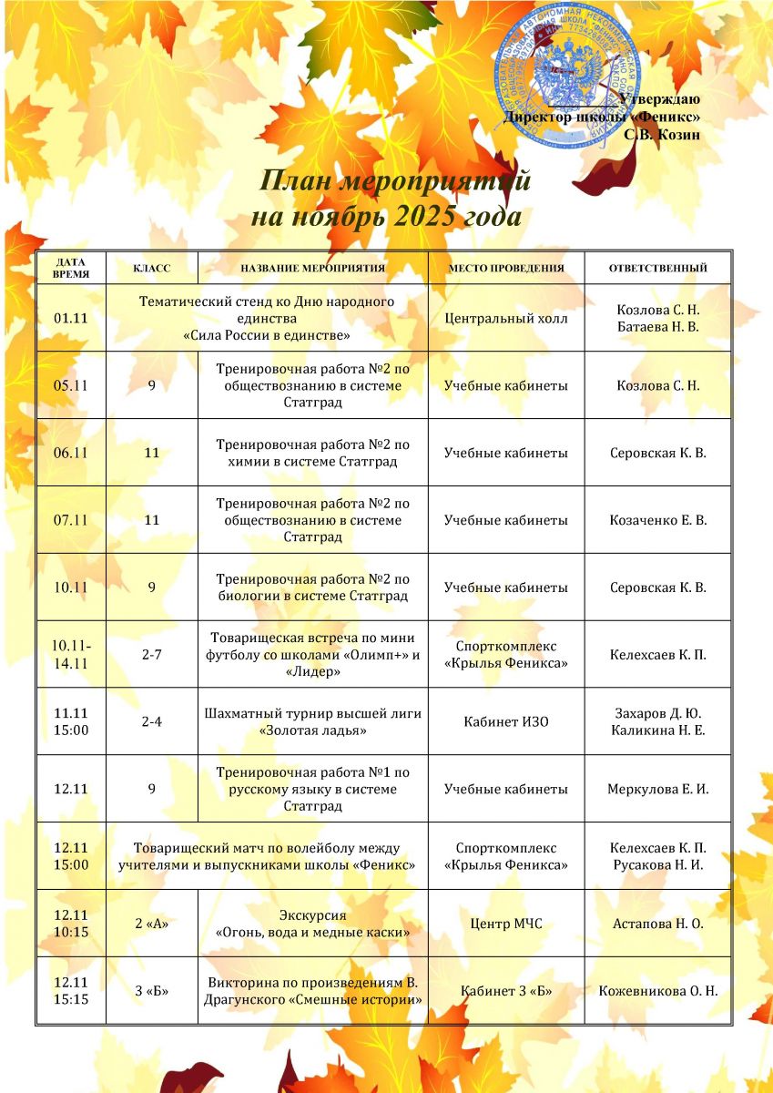 План мероприятий на ноябрь 2025 года