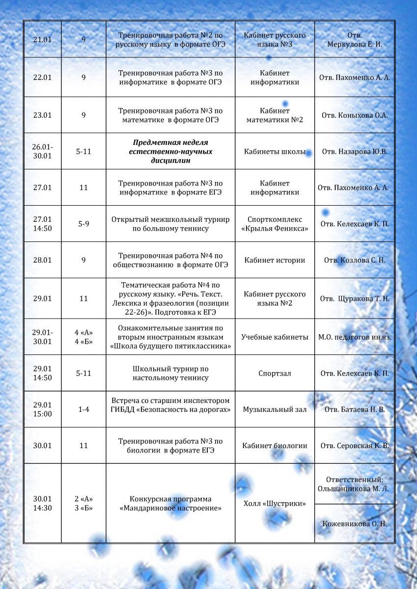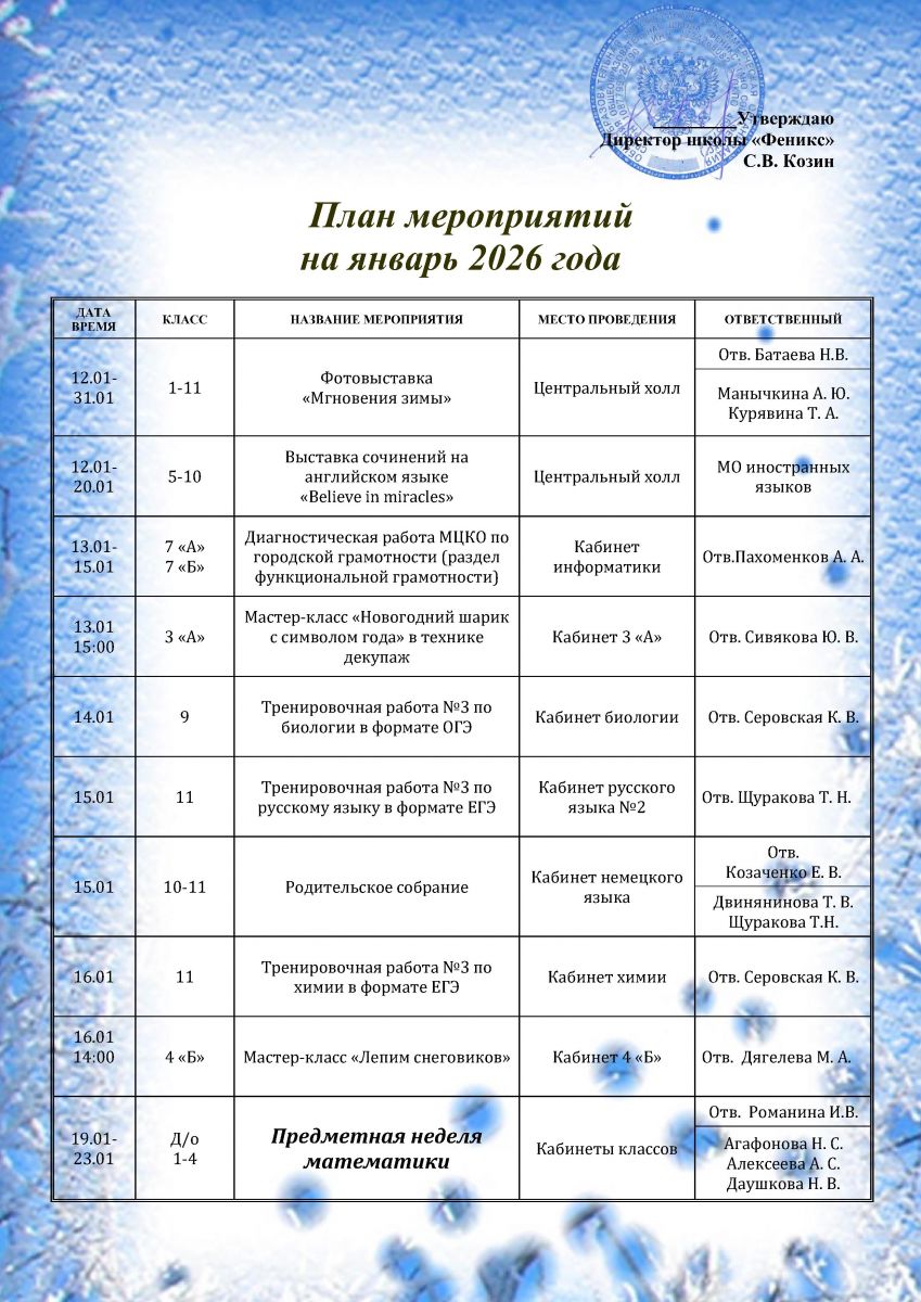 План мероприятий на январь 2026 года