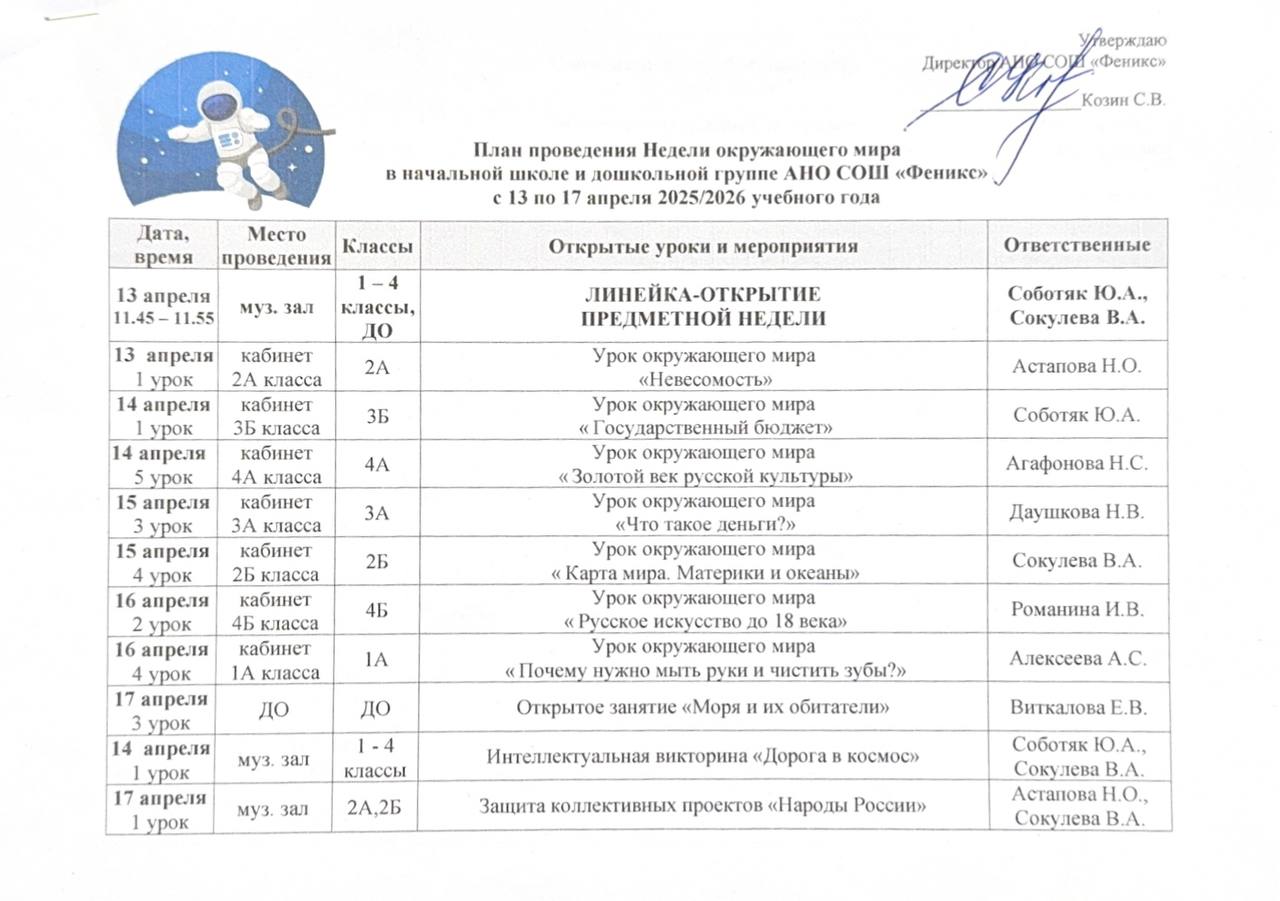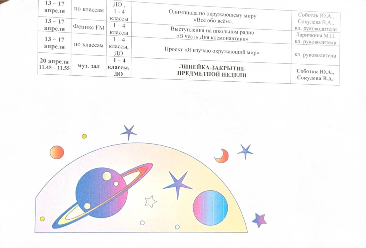 План проведения недели окружающего мира в начальной школе «Космическое путешествие»