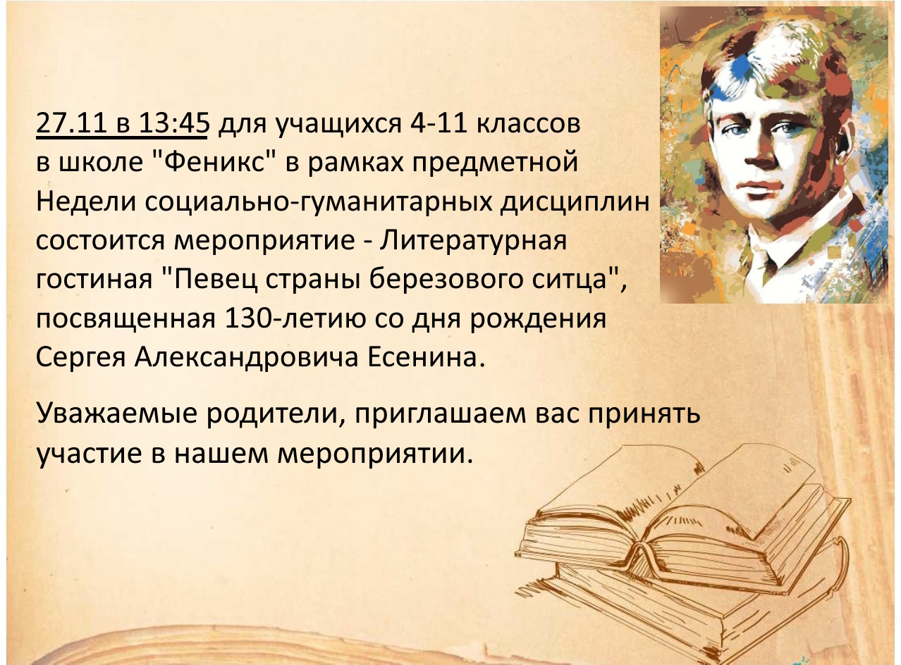 Посвящается 130-летию со дня рождения С.А. Есенина....