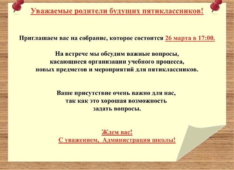 Родительское собрание для будущих пятиклассников