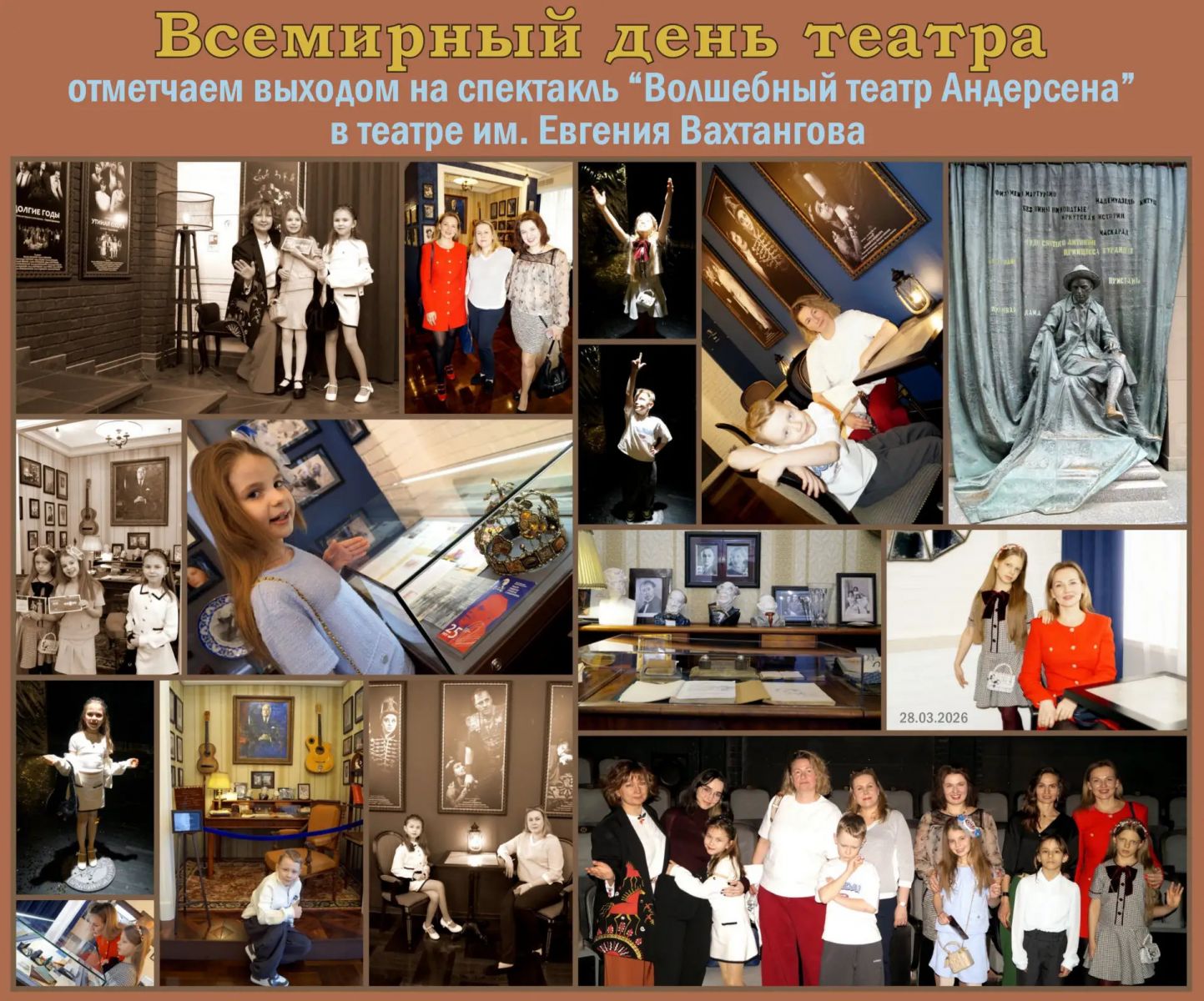 27 марта - Всемирный день ТЕАТРА и окончание учебного модуля в нашей школе! Ученики и родители 2А класса отметили этот замечательный День выходом на спектакль «Волшебный театр Андерсена», поставленный на Симоновской сцене Театра им. Евгения Вахтангова.