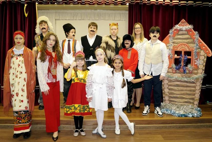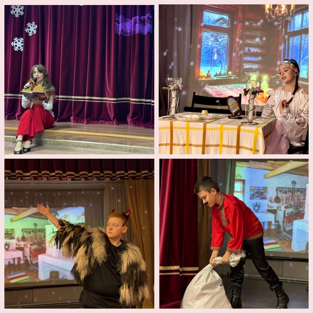 В преддверии зимних праздников ученики театрального кружка школы «Феникс» подарили зрителям настоящий подарок – спектакль «Ночь перед Рождеством» по бессмертной повести Н.В. Гоголя. Постановка стала ярким и душевным событием, в котором удачно соединились литературная классика, детская непосредственность и волшебная атмосфера ожидания чуда.