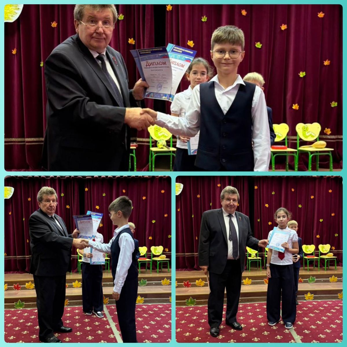 27.10 состоялась линейка в начальной школе! Право поднять Государственный Флаг Российской Федерации предоставилось ученику 1 «А» класса! Директор школы поздравил победителей ВСОШ школьного этапа: учащихся 4 «Б» класса Анну Л. и Федора Н.! Отметил учащихся, которые приняли участие в празднике Осени и пришли в карнавальных костюмах!