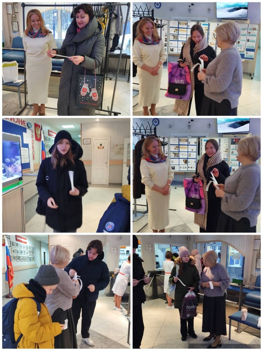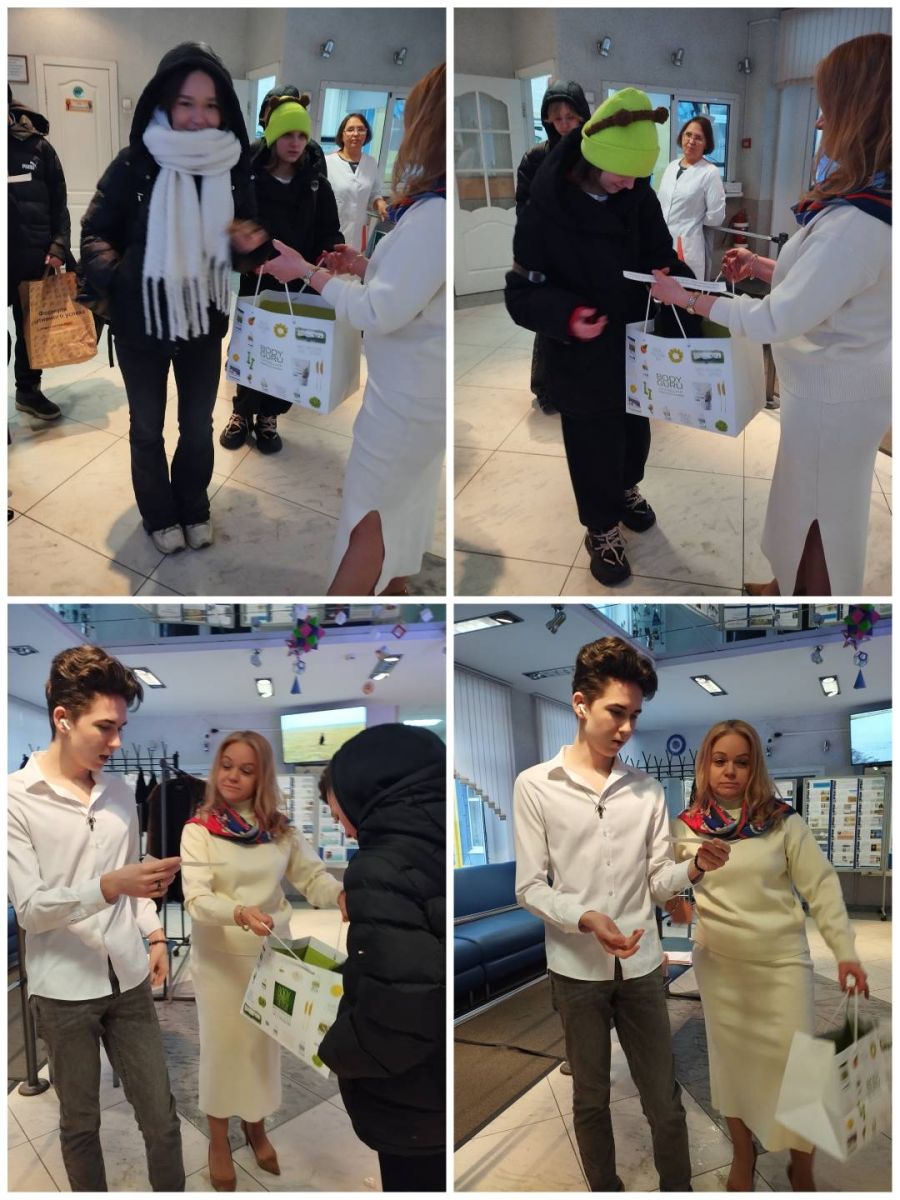 Сегодня в средней/старшей школе началась предметная Неделя естественно-научного цикла. На входе в школу учителя математики Назарова Юлия Владимировна и Коныхова Ольга Анатольевна встречали учеников и педагогов математическими вопросами и задачками и дарили конфеты за правильные ответы.