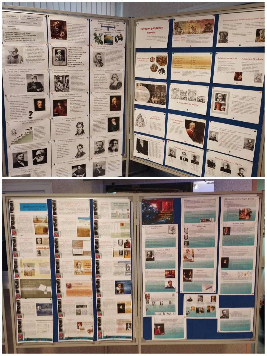 К началу предметной недели на входе и в холлах были оформлены тематические стенды с очень полезной и интересной информацией о великих ученых – математиках, физиках, химиках, биологах; о великих открытиях и достижениях.