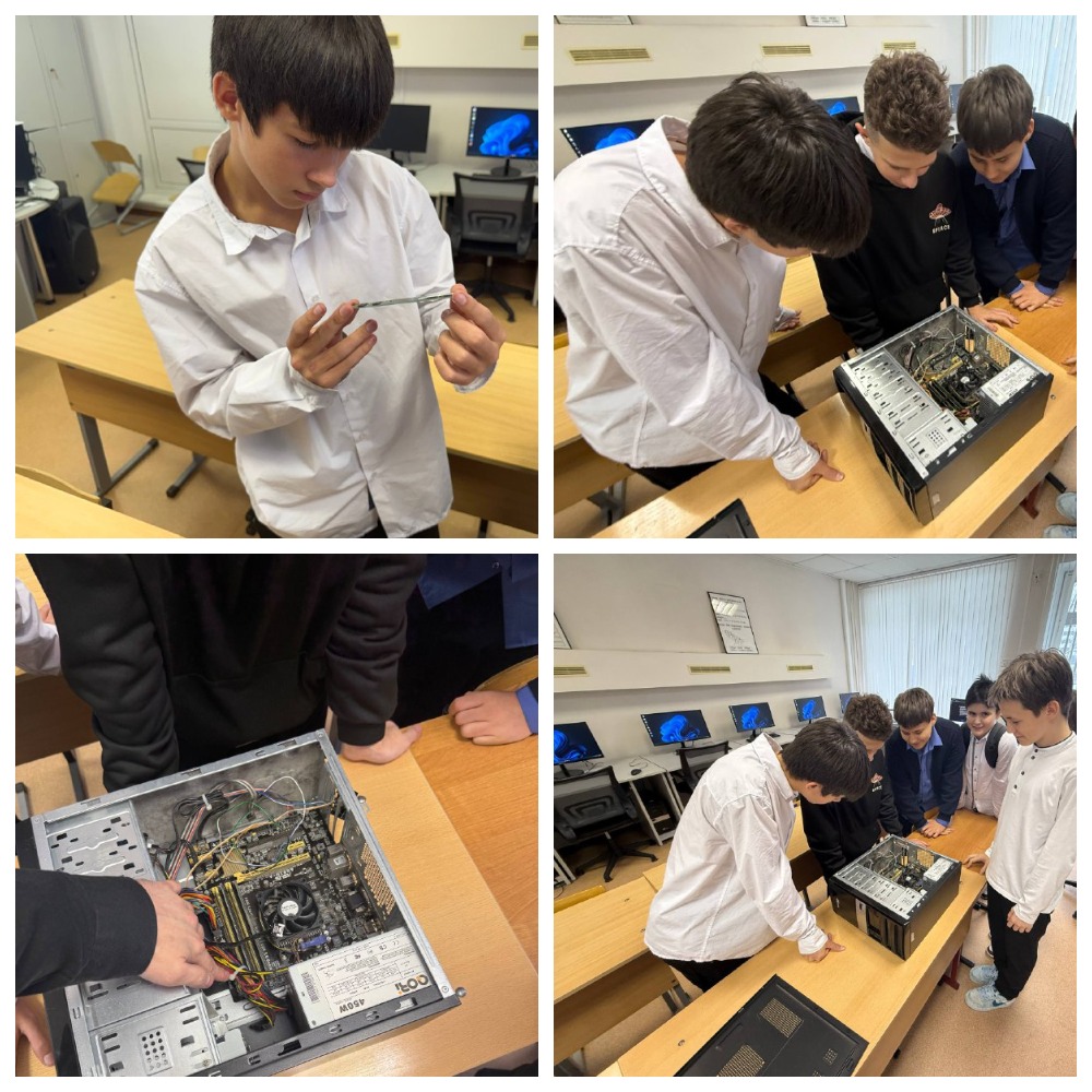 Под руководством учителя информатики Пахоменкова Александра Алексеевича учащиеся разных классов познакомились с внутренними компонентами системного блока, узнали, за что отвечает каждая деталь, и увидели, как компьютер «работает изнутри». Такой формат занятия помог не только расширить знания, но и пробудить интерес к современным технологиям и инженерным профессиям.