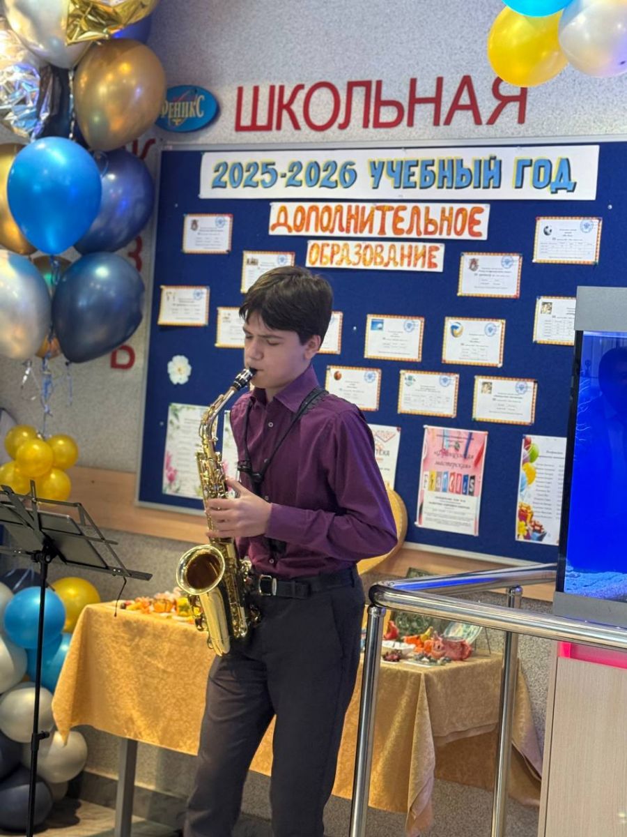 Особое очарование этому утру добавляла живая музыка на саксофоне — один из учеников школы исполнял известные мелодии, и мягкий, теплый звук инструмента разливался по всему холлу. Пространство быстро наполнилось людьми: кто-то останавливался послушать, кто-то снимал происходящее на телефон, но все без исключения улыбались. Праздник начинался уже у входа в школу.