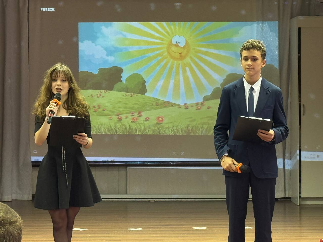 В 14:00 в актовом зале состоялся большой праздничный концерт, к которому ученики готовились с особым трепетом вместе со своей учительницей музыки — Марией Петровной Ларичкиной. Открывали и вели концерт два ученика школы. Они держались на сцене уверенно и очень профессионально, легко общались с залом и создавали атмосферу настоящего большого праздника.