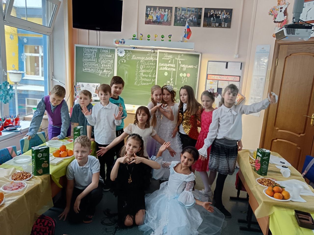 Ребята нашего класс приняли участие в Новогоднем спектакле.Очень готовились и переживали.т. к.выступали в 3 спектаклях: для 1-2 классов, для 3-4, для Филиппков и детского сада.Главные герои-Володя, Эвелина, Вероника, Аня,Мариам. А какой таней часов танцевал весь класс!